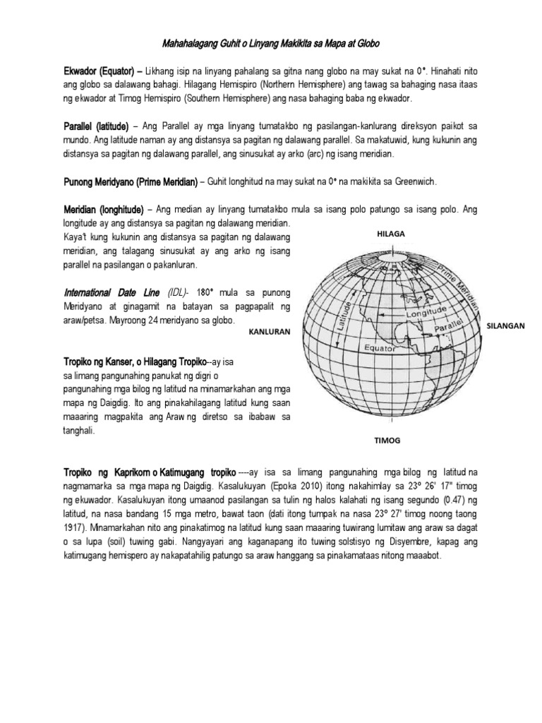 Ang globo ay ginagamit upang higit na maunawaan ang daigdig. 992018 Ito ay mahalaga sa pagbibigay ng tiyak na lokasyon o absolute location ng isang lugar sa mundo. 7122014 Mababang latitud o Rehiyong Tropikal Ang nasasaklaw sa pagitan ng dalawang espesyal na guhit na ito.